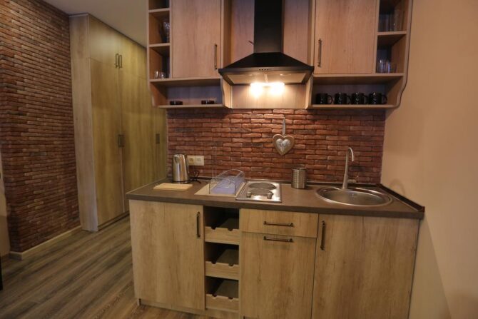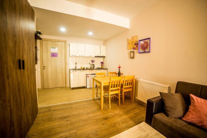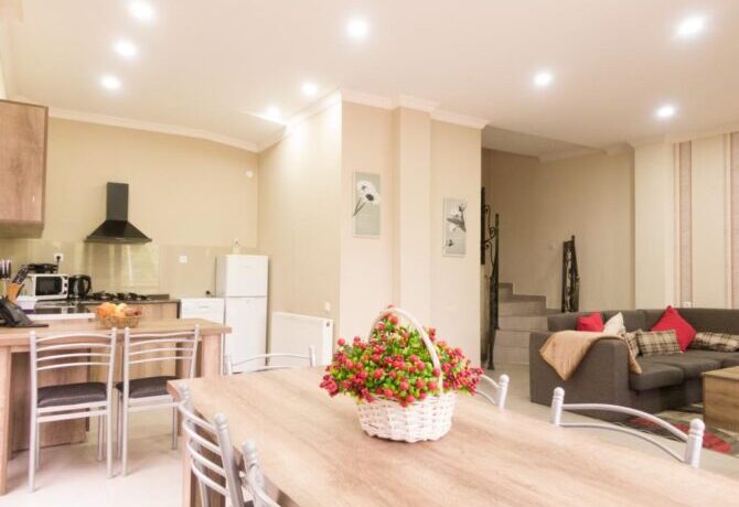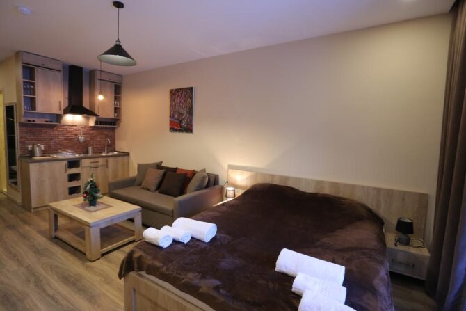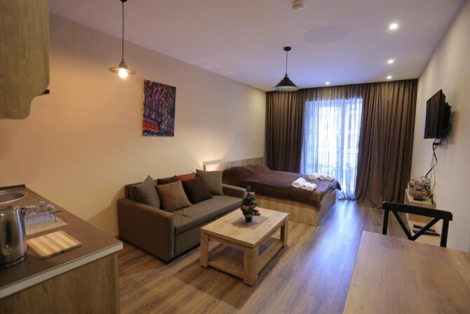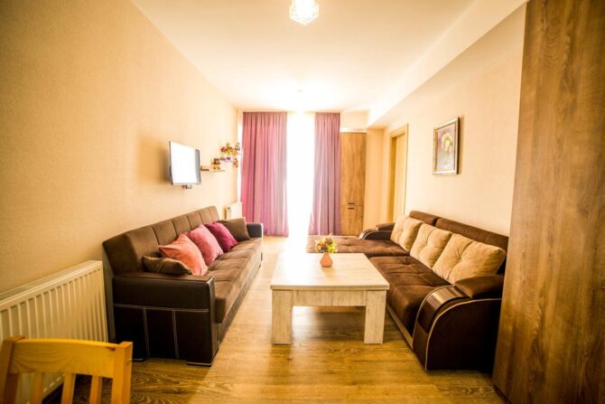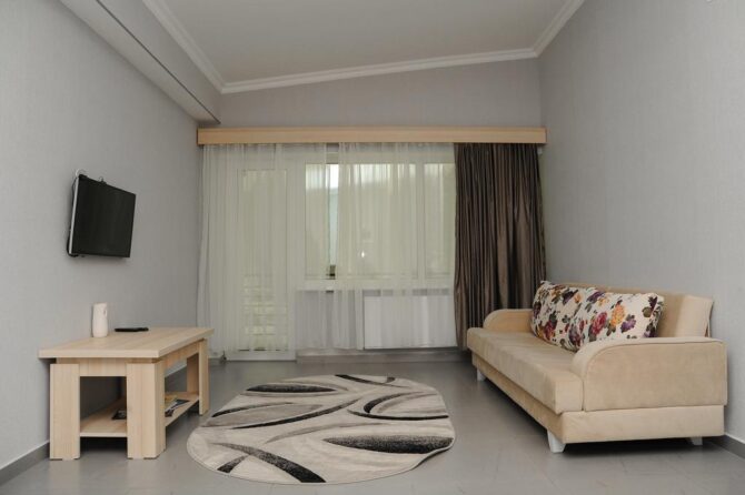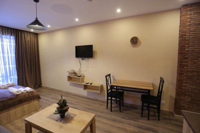The aparthotel offers stylish studios with equipped kitchenettes. For companies and tourists with children, family roomsare provided. It offers a restaurant with a bar, a garden for walking, a children’s play area, free parking. For additional relaxation, there is a cozy terrace with mountain views. Like all Bakuriani hotels with their own restaurants, Aparthotel in Bakuriani The Valley offers guests full board.