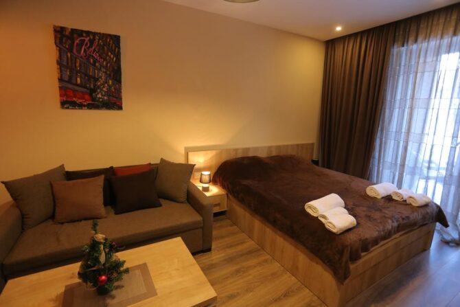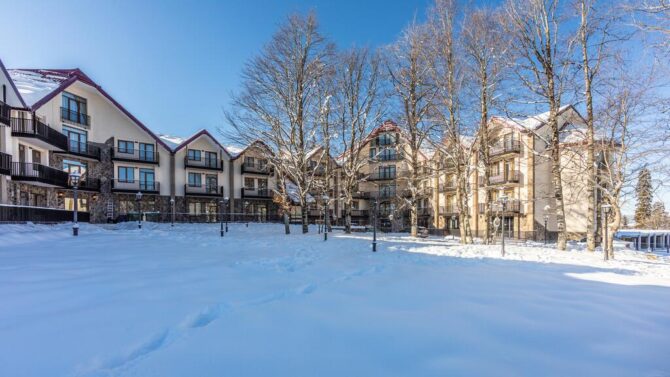 We can say that these apartments are surrounded by ski slopes and are located in the heart of the resort area. Surrounded by forest, the property is 300 metres from the Kokhta Ski Lift. It offers superior apartments with a bedroom and a living room. There is a restaurant and a bar on site, and a large supermarket is 200 metres away. A wide track leads to the lift, right from the entrance there are routes for cross-country skiing. Private parking is available free of charge. In summer, there is a cosy terrace with mountain and forest views. For guests there is a common lounge, a children’s playroom, a billiard room, a room for storing skis and equipment.