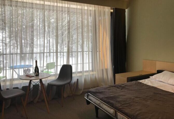 The hotel is close to the Didveli ski lift. Apartments are equipped with microwaves and kettles. Employees will help you decide on the choice of leisure, tell you where and what to visit. Very close to the ski school, which will be very useful for novice skiers. Meals are provided by a restaurant, a bar, a children’s play area, a health complex with a swimming pool.