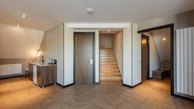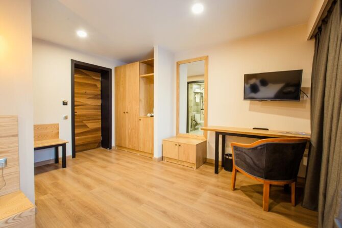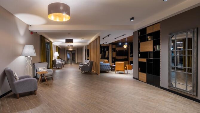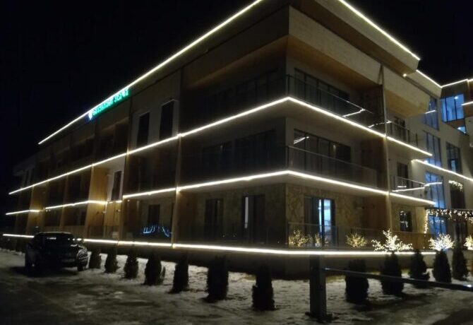 Another brand new hotel is close to the slopes. Rooms – double deluxe classes. A children’s play area is available for children. There is a spa and wellness centre with an indoor pool. Use of the terrace is included in the payment. There is a restaurant, but each room has its own kitchenette with microwave and kettle. There’s no clarity with parking. It is then free, then paid. Nuances need to be clarified when booking. an ATM is installed at the reception. According to a few guest reviews, the service is rated on average by 9.1 points. Displeasure is caused by a separate fee for the use of the pool and not very convenient location from the lifts.