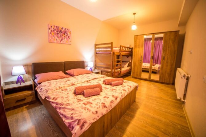 In addition to skis and snowboards, there is nothing to do in Bakuriani in winter. The best option for check-in is an apartment. Price and quality are quite consistent with each other. As the most cozy option, you can choose Chalet Kokhta.