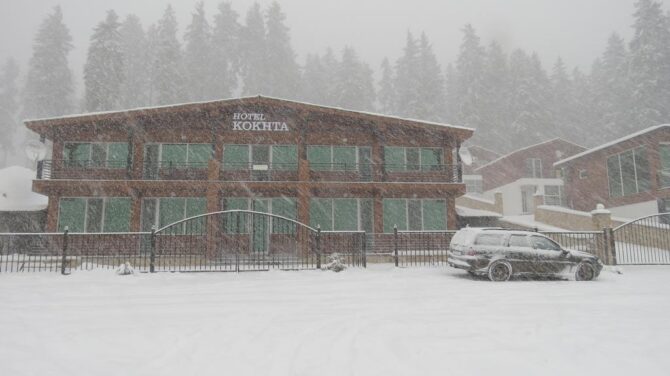 The new 3-storey hotel was built in 2018 right at the 25th ski lift. Half a kilometer from the building there are two more cable cars Didveli and Kokhta. Superior double roomsare offered to accommodate guests. There is no restaurant and kitchen, so you will have to take care of the food yourself. Mgzavrebi Khizhina, a pizzeria and a restaurant serving Georgian cuisine, can be found nearby. On the territory of the hotel there is a children’s playground, a sun terrace, free parking, ski equipment rental.