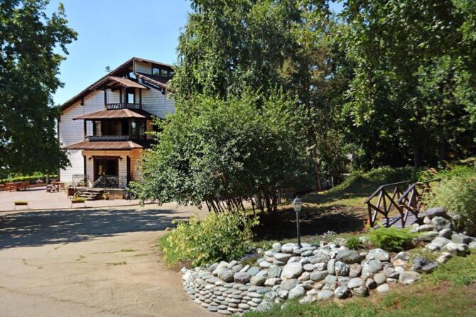 Three-star hotel “Khamovniki” is located in the park and recreational area. In the main two-storey building there are 20 comfortable rooms of the categories “Standard”, “Suite” and “Apartments”. A continental breakfast is available each morning for a fee. Full board can be arranged with the café. The territory of the hotel includes – a private beach, a children’s playground, sports grounds. The room has a stylish billiards room, sauna, shared lounge. In summer, you can go fishing, hiking or cycling, and in winter ski equipment can be rented. Barbecue areas are provided.