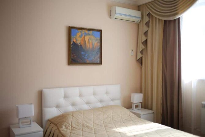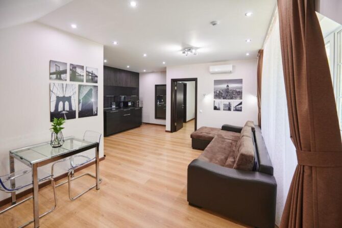 The rooms of the apart-hotel can accommodate from one to four people. It features a modernly equipped kitchen with a washing machine. There is a microwave, refrigerator, a full set of dishes. There is a café in the building and breakfast can be ordered à la carte. Private secure parking is included in the price. Hotelslocated in the center of Balakovo are very popular. These apartments are no exception. Within walking distance there are public transport stops from which you can leave in any direction. The staff is fluent in English.