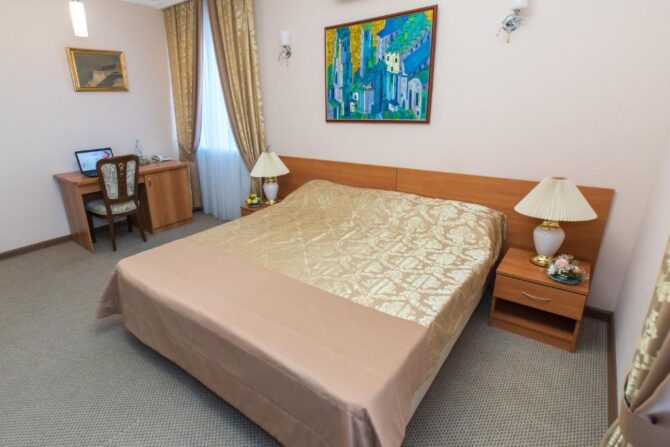 Modern hotel “Salyut” offers accommodation in comfortable rooms at affordable prices. The fund includes single, double Standards, junior suites, suites, luxury elites and VIP apartments. The rooms are equipped with a kettle, mini-refrigerator, safe. Breakfast is served in the hotel’s restaurant, but you can not include it in the price. In addition to the restaurant, the best coffee house of the city “Plantation” is opened in the building. Guests are also attracted by the hotel’s interesting location in the island part of the city near the reservoir. Nearby is the administrative and business center of Saratov, so the hotel is chosen for a stop by businessmen and business people. It is believed that the best service is provided here, based on respect for guests, honesty of employees and quality of services.