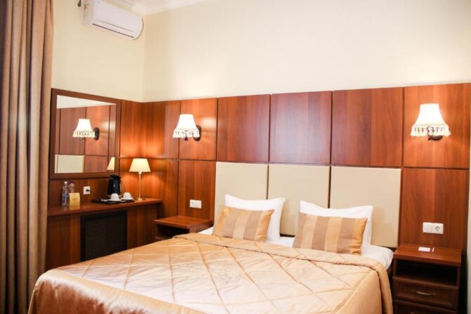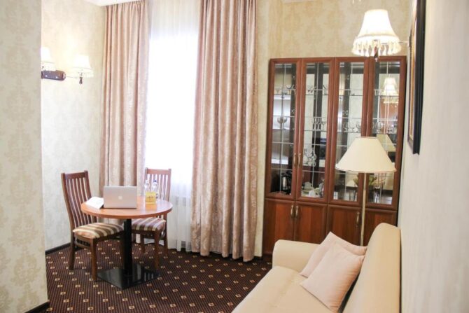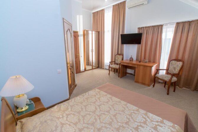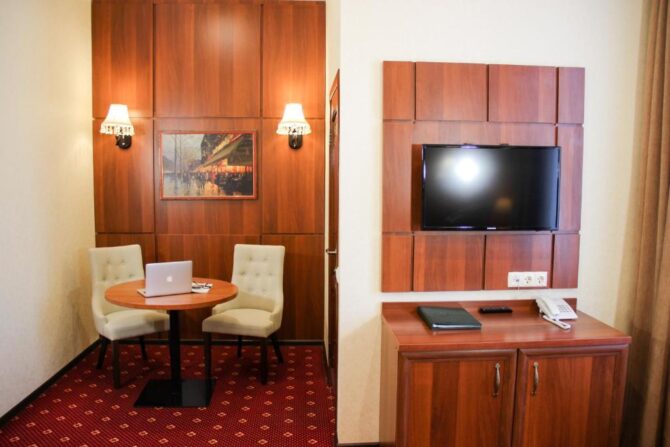 Such small hotels with their own restaurants are the main stop for a couple of nights in provincial cities. Their services are used by business people and business travelers. In rooms of any category of comfort necessarily provided a desk. For tourists, “Arbat” will be an excellent corner where you can relax after an active day filled with excursions. Breakfast can be included in the room rate or ordered from the menu. In the evening after dinner, everyone usually disperses to their numbers or goes to the billiard room to chat and play a couple of games. In the bar of the hotel gather fans of sports competitions.