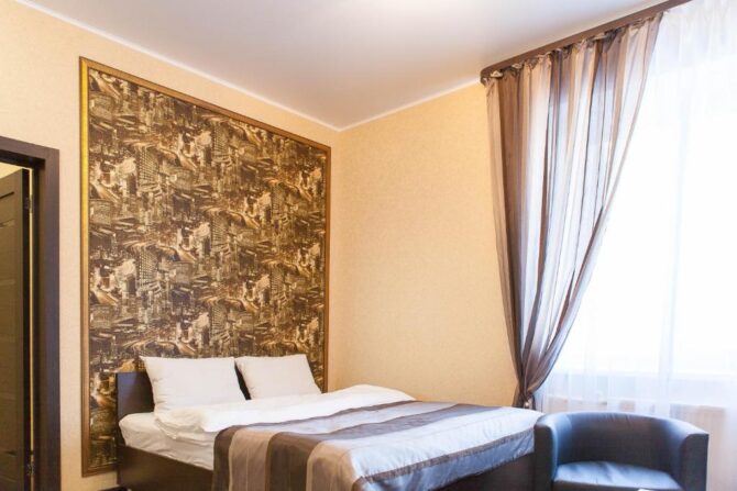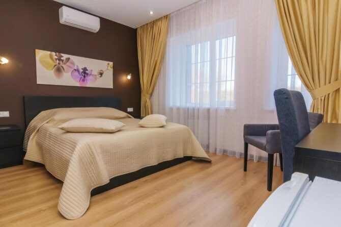 The 17-room inn is located in the old part of the city. Nearby there is a good transport interchange, so there will be no problems with movement by public transport. All rooms are equipped with solid furniture, some rooms are decorated according to the author’s design. Equipped with a bath complex with an indoor pool. The restaurant offers an à la carte menu and a continental breakfast in the morning. The main advantage of the hotel is its territory. A well-groomed yard in the summer adapts to an additional recreation area – sofas are taken out on the street, dining groups are installed, and in winter everything turns into a magical snow fairy tale. 100 meters from the hotel is the lake “Balakovka”.