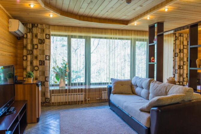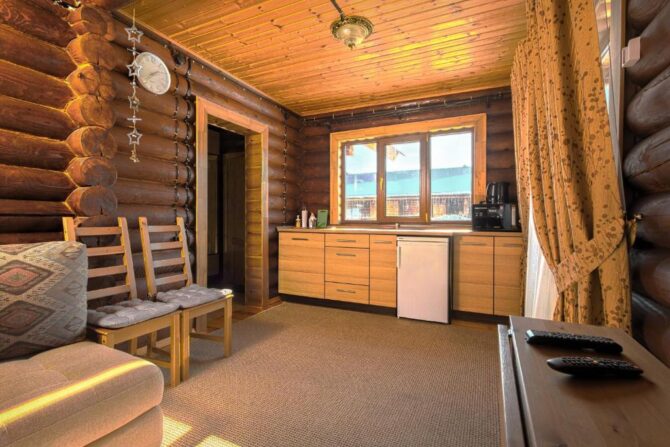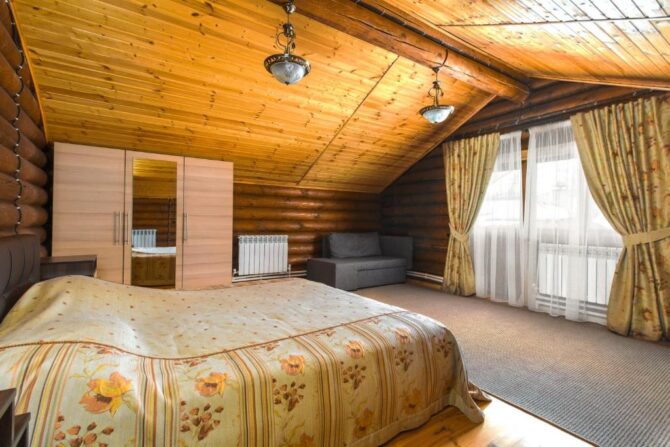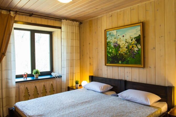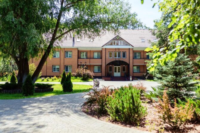 The mini-hotel occupies a two-storey mansion with a mezzanine, located in the middle of an oak grove. All rooms are decorated in full compliance with ECO standards, handmade furniture made of solid wood, wooden euro-windows are used for glazing. The walls in all roomsof the bath complex are decorated with Siberian larch. Of the wellness procedures, cedar barrel, phyto and panto heat, herbal medicine (decoctions, lospra, consultations on the collection of medicinal herbs), SPA programs, oxygen bar, Thai massage are offered. Catering is handled by the hotel’s café. Breakfast is available on request and room service is available. The kitchen is à la carte.