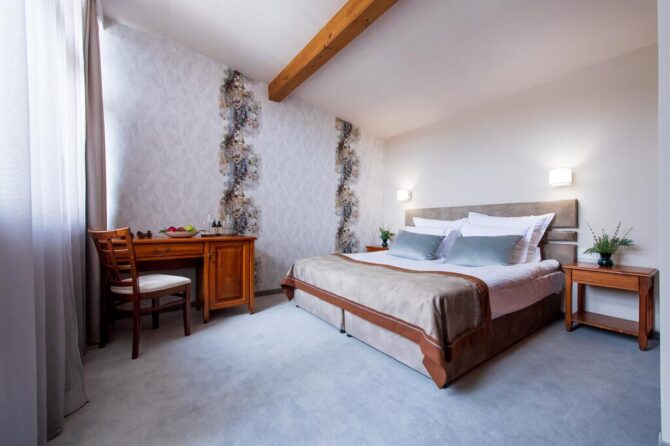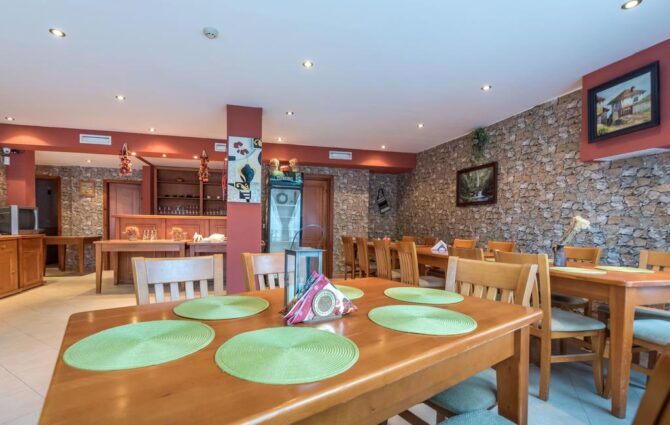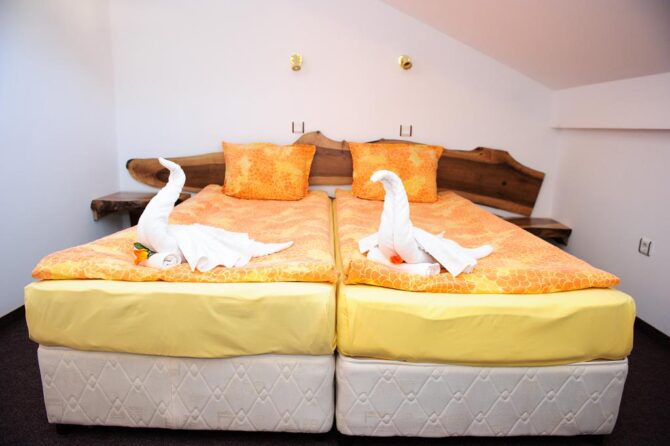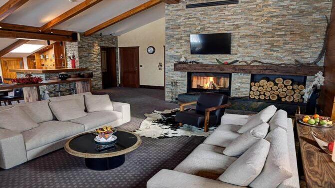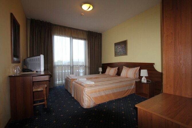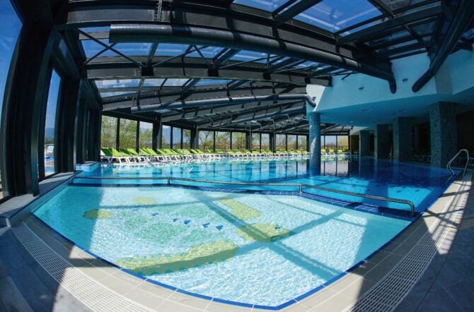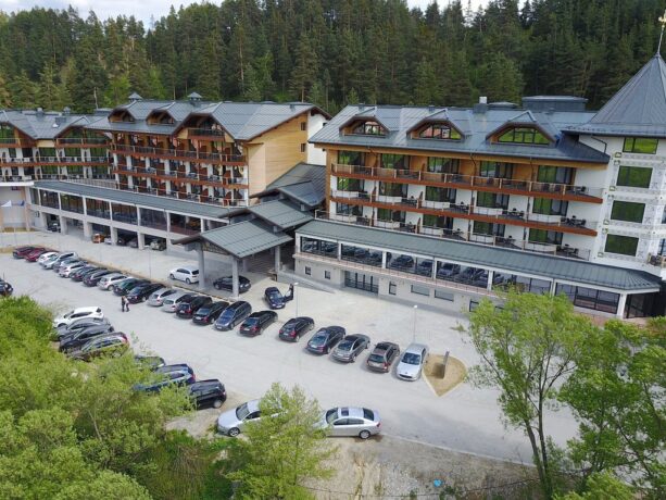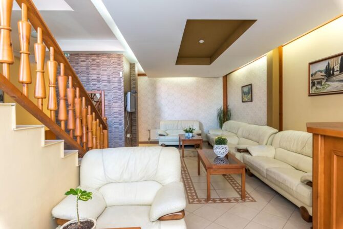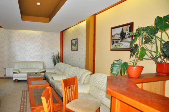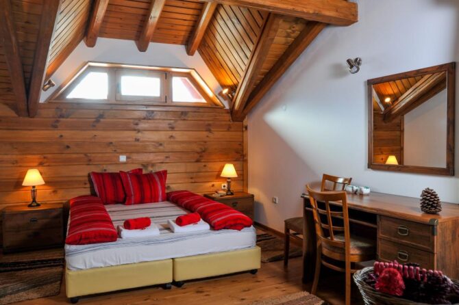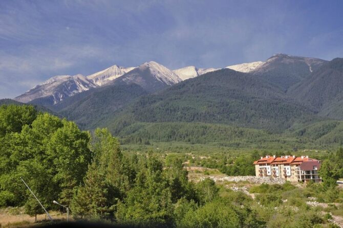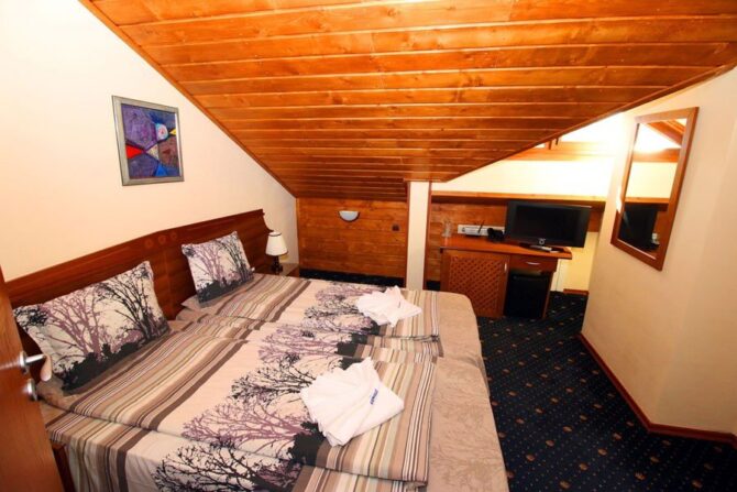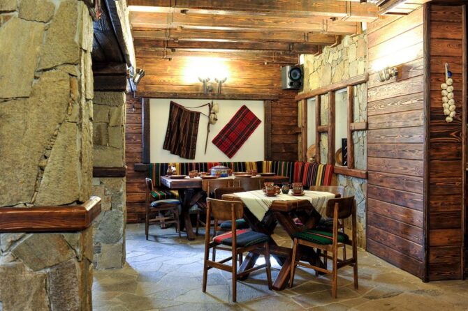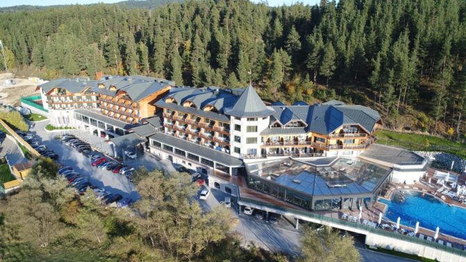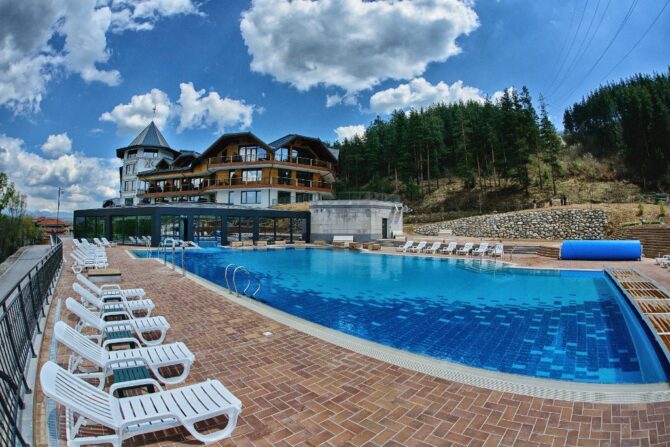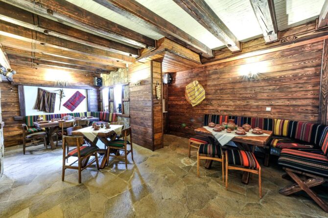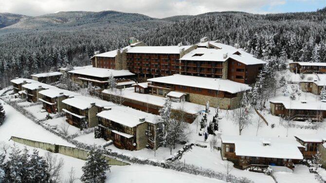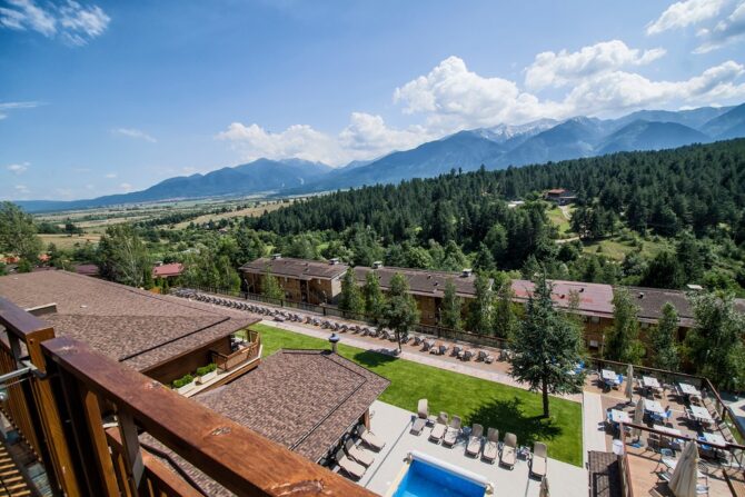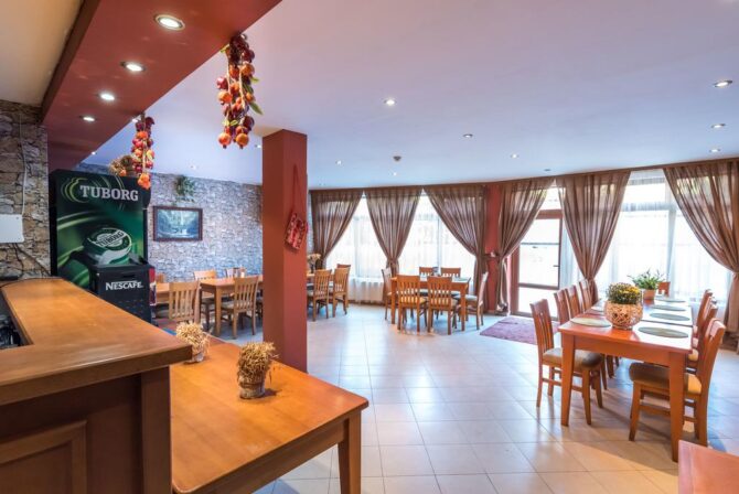 An authentic complex, in the interiors of which natural wood, stone and brickwork are used. In the buildings there are double rooms,junior suites and apartments. For those wishing to live separately, there are villas with 2 bedrooms. The owners took care of the organization of leisure activities for guests. For them there is a bowling club with 4 lanes, a billiard room, a modern spa with medical procedures and beautician services. On the territory there are swimming pools for adults with mineral water, saunas of different types, steam baths with panoramic windows. Free private parking is available at the electric car charging station. For children – club, 2 playgrounds, swimming pool with mineral water. Ski equipment can be rented at the rental service, and there is a free shuttle bus to the ski lifts. Breakfast is served in the Katarino Restaurant. Closer to lunch, another restaurant Menanato opens. In the evening, both offer an à la carte menu. It is possible to order “ultrapension”. The complex is located at the foot of the Rila massif, 2 km from the town of Razlog.