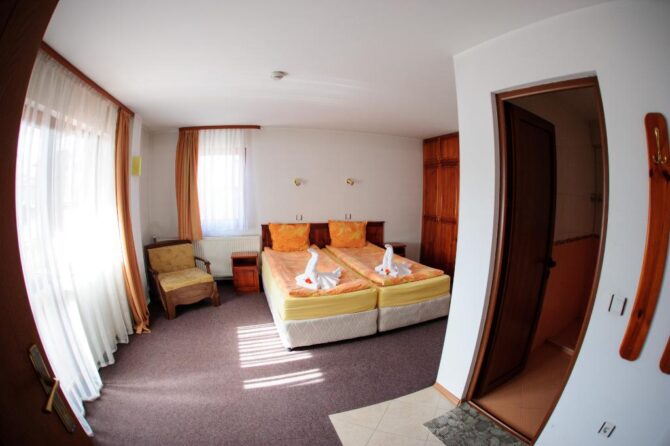 Just a 5-minute walk from the ski lift to a small hotellocated in a quiet area of the city. The owners are glad to large companies, preparing for them three and four-bed rooms,lovers and couples, travelers with children. For them there are double rooms with an extra bed and a suite. The family tavern is ready at any time to feed delicious homemade food, the quality of which can be appreciated during a common breakfast. Free parking is provided and warm hospitality is guaranteed. For relaxation there is a sauna and Jacuzzi.