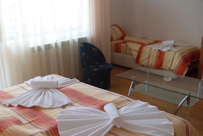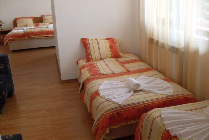 Featuring a well-kept courtyard, the guest house is located in a densely populated area of Bansko. To the ski lift – about a kilometer. The owners focus on accepting couples, offering single, double rooms,maisonettes, attic and junior suites – all with extra beds. The kitchen specialises in local organic dishes and breakfast is served in the morning. Lunch and dinner can be found at christie Restaurant, which is a stone’s throw from the hotel. The resort centre, shops, market and entertainment venues are a 5-minute walk away.