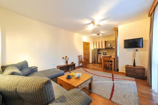 On the pedestrian street of Bansko, 800 metres from the ski lift, there is a quiet, family-run hotel. The interiors of the rooms and apartments are full of wood and home textiles. The hosts can enjoy a breakfast of local dishes. They opened their own tavern, so there will be no problems with lunch and dinner. Nearby there are restaurants and cafes, shops and a supermarket. The apartments are equipped with kitchens. Sauna facilities and barbecue facilities are available for a fee.