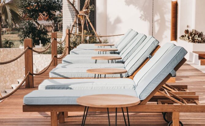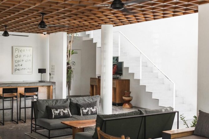 Slow Hotel is located on Canggu’s main street, surrounded by stylish boutiques and trendy cafés. The nearest surf beach is about a five-minute walk away.