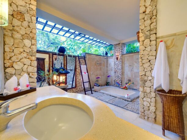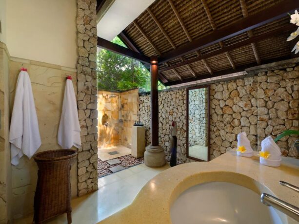 The villas are even more secluded, led by a stone staircase that descends to the river. The constant chirping of insects and birds, paradise flowers and tropical trees remind of rest in the wild jungle.
