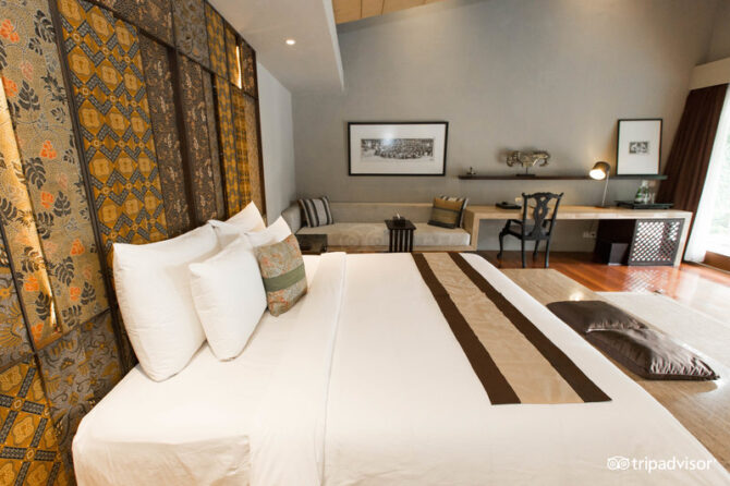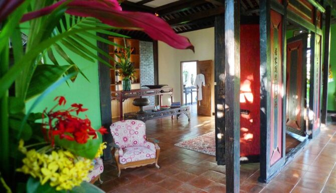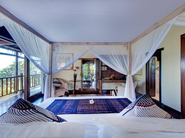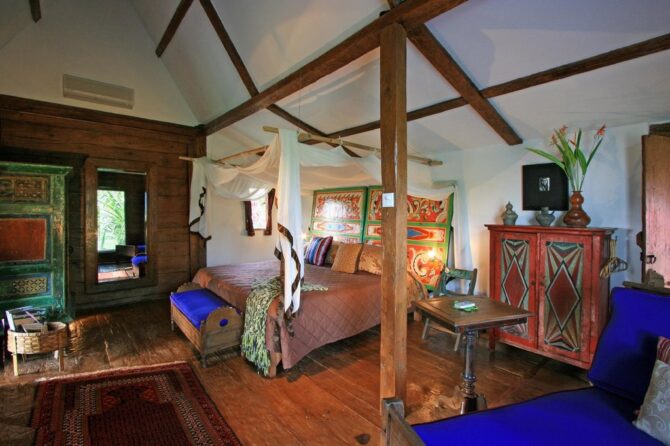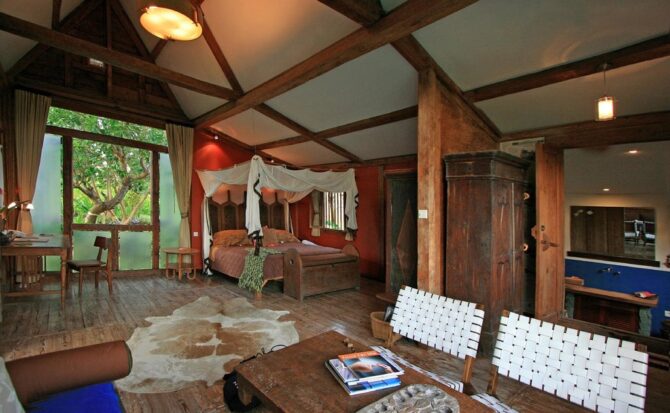 The rooms are decorated with local handmade fabrics and filled with unique carved wooden furniture. Village Cabin is the resort’s smallest house with a double bed, private bathroom with rain shower and veranda. The common houses have two double bedrooms with en-suite bathrooms and a huge common living room with a bar, antique tables and sofas. Suites with verandas are ideal for newlyweds.