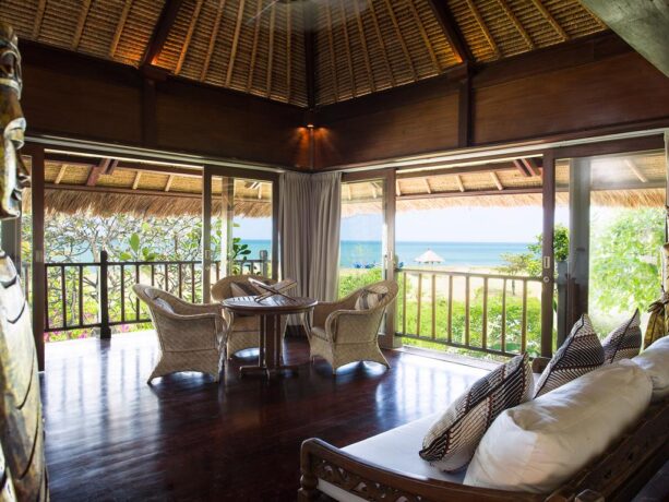 The hotel is located on the south coast of Bali, offering panoramic ocean views. COMO Uma offers fresh seafood on the wood grill and healthy juices in the beach bar