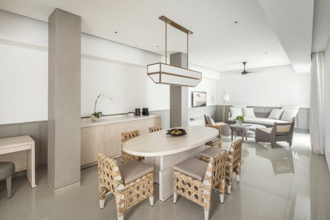 The resort offers 52 rooms of different levels of amenities, 55 one- and two-bedroom villas, as well as 12 duplex COMO penthouses with three bedrooms, rooftop pools and the best ocean views for miles around.