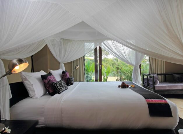 The hotel is located in the village of Chepaka, in a little-visited countryside six miles from the trendy beach town of Canggu and 15 miles from Ngurah Rai International Airport. Sungai Villas are ideal for a romantic holiday for lovers, but children will be bored here.