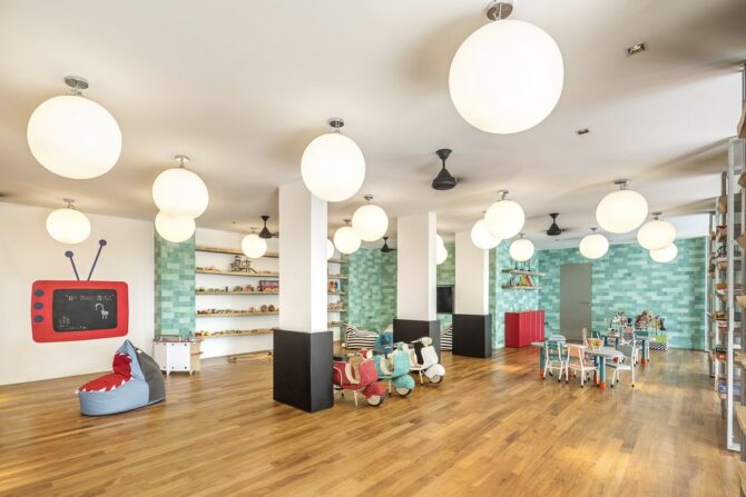 A tranquil villa with modern interiors, surrounded by rice fields a few steps from trendy restaurants, positions itself as a family hotel.