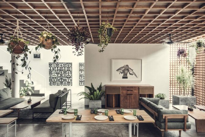 The hotel has 12 rooms that have the same exquisite design as the lobby and restaurant: bare stone walls, clean lines, boho art on the walls. Upholstered furniture is made in muted natural colors, and contrasting materials – concrete floors, bamboo chairs, elegant wooden coffee tables – are perfectly combined with each other. The rooms are very spacious, with plenty of space to relax. The owner advocates for environmental friendliness, so the rooms do not use plastic. Each ground floor room has its own plunge pool. Slow’s Restaurant is one of the hottest places in the city.