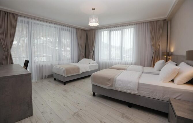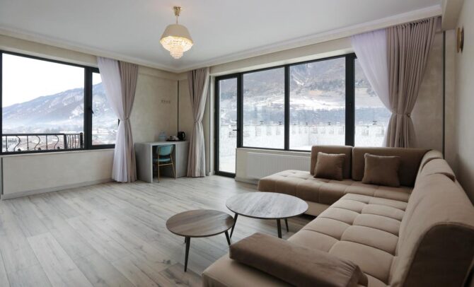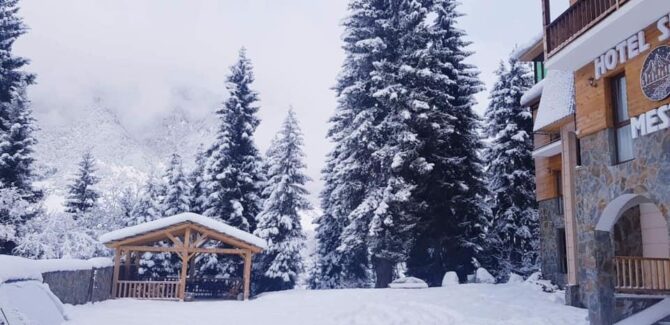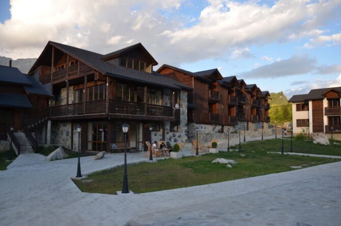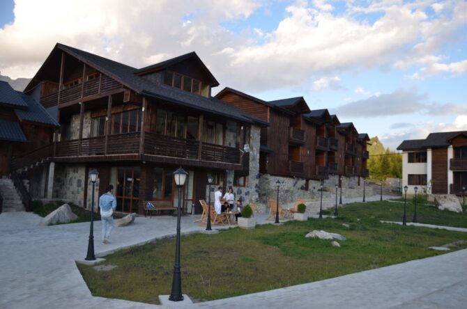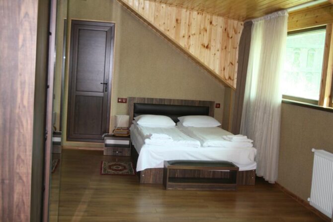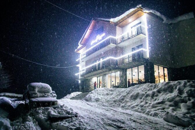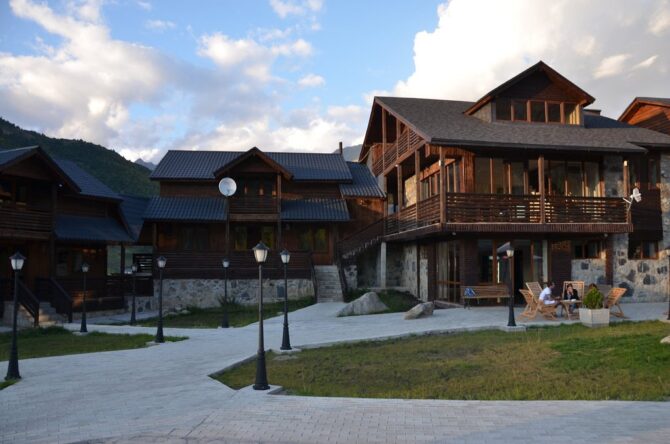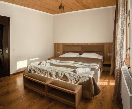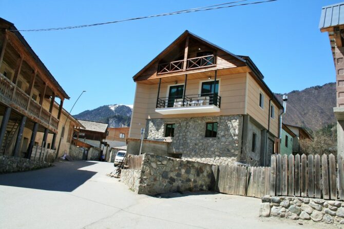 Themini-hotel consists of several wooden houses decorated in a rustic style. The nearest ski lift is 100 metres away. There is an on-site restaurant serving breakfast, lunch and dinner. In summer, a tea table is served as a bonus for guests during the day. A 5-minute walk away is the center of Mestia, where the best restaurant in the area is located – “Panorama”. The hotel staff speaks several languages. Employees will always tell you how to get to the objects of interest and where to relax. Pets can not be brought here. Parking is free, located on site.