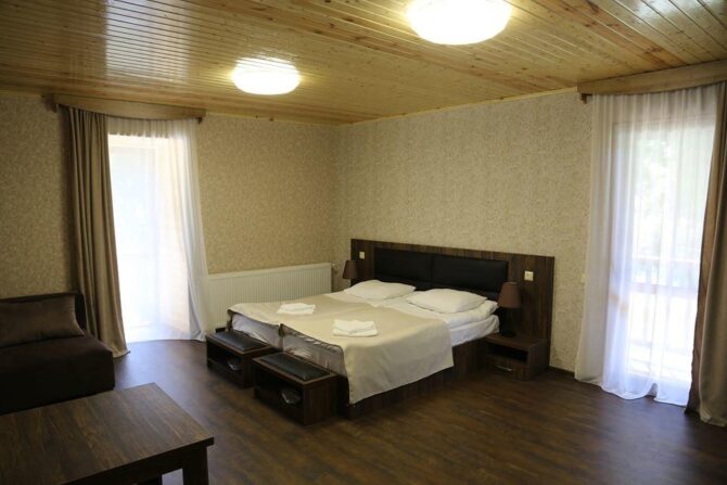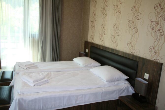 Three-storey hotel with a panoramic attic provides guests with two, triple rooms. Within walking distance are the Museum of History and Ethnography, the Hatsvali lift. Breakfast is delivered in the morning. No pre-order for free parking is required. By agreement, the owners can take the traveler with his pet. The hotel is conveniently located in relation to the restaurants and shops of the village. There are four restaurants, a supermarket and a market nearby.