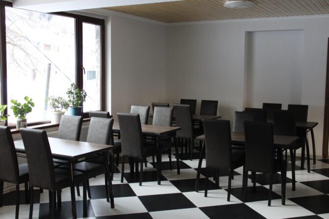 Spacious two-storey hotel offers guests two, three local and family rooms. At the reception, you can always take accessories for barbecue and go to the nearest equipped area to fry kebabs. There is a restaurant on site offering guesthouses on the “Swedish system”. In the evenings, the bar opens with an excellent selection of wines and other drinks. The reception is open 24 hours a day. You can buy ski passes from the receptionist. The owners offer car rental services, paid airport shuttle.