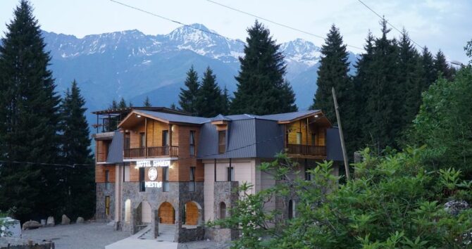 The hotel is located near the center of the village of Mestia. Double rooms of standard and improved comfort level are prepared for accommodation. It offers breakfast, restaurant, lounge area with fireplace, garden, terrace. Stylish design of the premises is marked by positive reviews of guests. On the territory there is a grocery mini-market, a souvenir shop, food delivery to the rooms. Half board and full board are available.