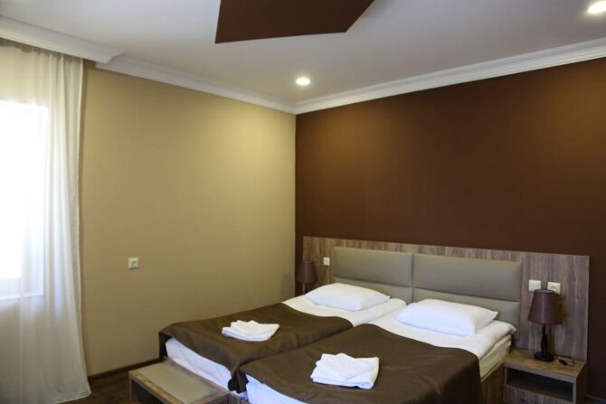 “Very clean, neat and beautiful hotel, with modest and nice staff. It is a short walk from the center, but the place is relatively quiet (cows and dogs make noise everywhere). Breakfast was good and flexible in time. I didn’t like that the staff didn’t seem experienced, but they learn quickly as soon as you ask them specific questions (about cleaning, delivery, transfer)” Andria, Georgia