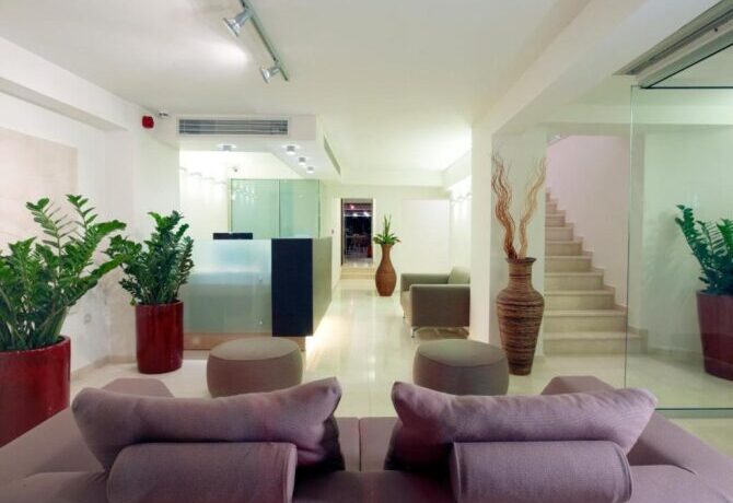 The four-storey hotel “El Greco” is equipped with 20 bright furnished rooms of seven categories. From small balconies you can see the Sparkling Libyan Sea in the sun. The size of each room is from 15 to 35 sq. m. For guests of El Greco, the doors of Porfyra are open – a stylish restaurant serving Greek dishes. There is also a small bar.
