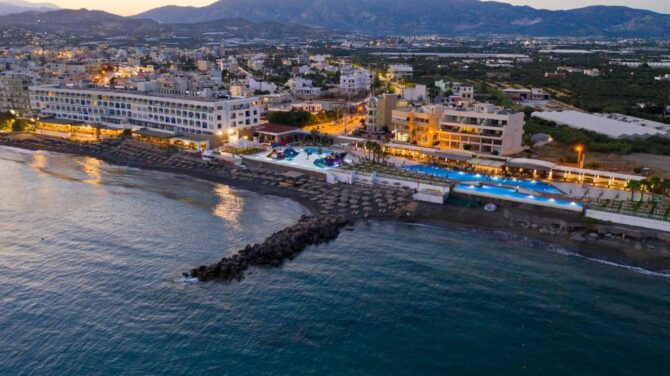 The hotel complex is suitable for families and travelers who appreciate the combination of modern comfort with home coziness. The main restaurant and the spacious tavern on the beach serve Greek and Cretan dishes. Lovers of fresh juices, hot coffee and original cocktails can visit two stylish bars.
