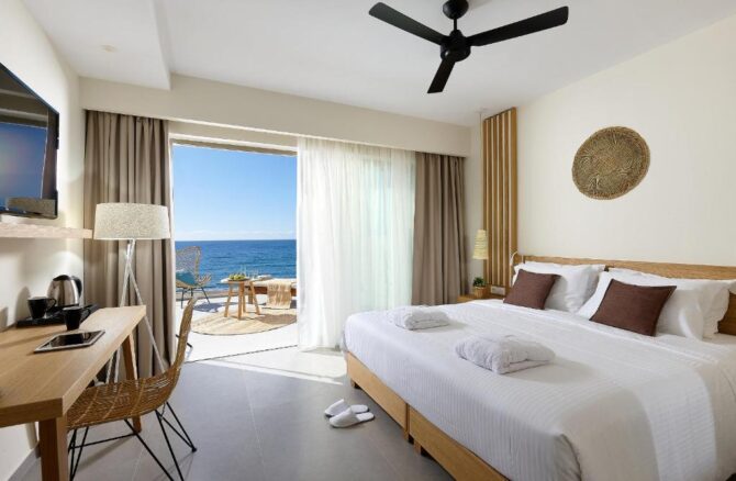 Almost each of these hotels, regardless of stardom and size, offers a traditional set of modern services and equipment. Therefore, the choice of hotel depends on additional options, as well as on the preferences and desires of specific guests of the resort. For those who love the Cretan nature, and also want to relax on the beach, swim in the pool and taste local dishes, the most suitable option is the Ostria Resort & Spa. Other advantages of this hotel include a spa, children’s activities, sports grounds and a gym. All this will help to turn the holiday into a bright holiday, rich in interesting activities.
