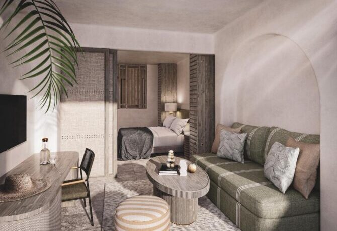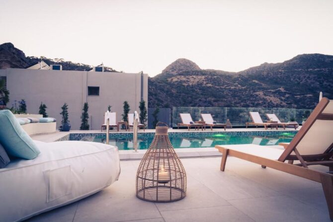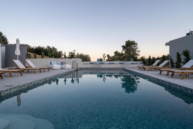 In October 2010, 5.6 km east of Ierapetra, NUMO opened its doors, a five-star beach hotel. The last reconstruction of the hotel complex, which includes several buildings, was completed in mid-summer 2021 From the hotel to the sea – only 170 meters. Very close to a small well-equipped beach, covered with light brown sand.