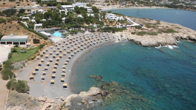 To the west of the village of Ferma is the picturesque bay of Kakkos. Here on the southern coast of the island, 10.2 km from Ierapetra, there is a large hotel complex Kakkos Bay. The first buildings of the hotel appeared in this place in 1988 In 2016, the last reconstruction of the hotel was completed.