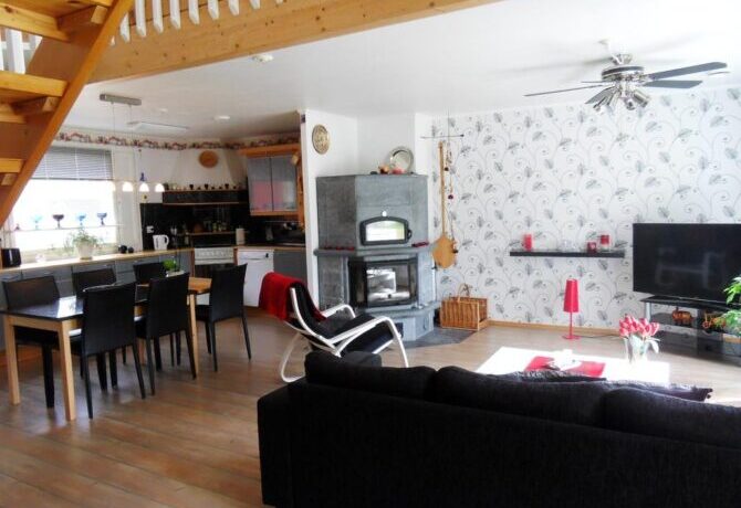 In summer, barbecue facilities are available. In the warmer season, you can go boating on the lake or lie on the beach. In winter, they like to ski, observe the northern lights.
