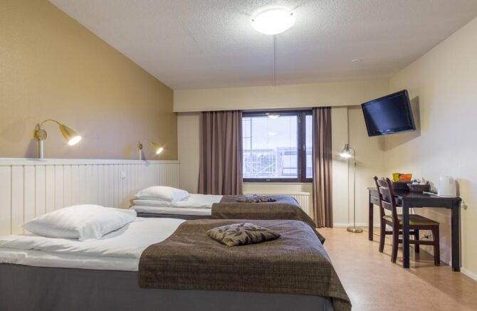 A cozy hotel where I spent several nights before flying out of Ivalo. Near the picturesque river. The hotel has two floors, but the elevator works around the clock. I liked the pool, which is open until nine o’clock in the evening and before going to bed you can swim in the cool water. Breakfast in the hotel is very hearty, hungry to leave will not work.
