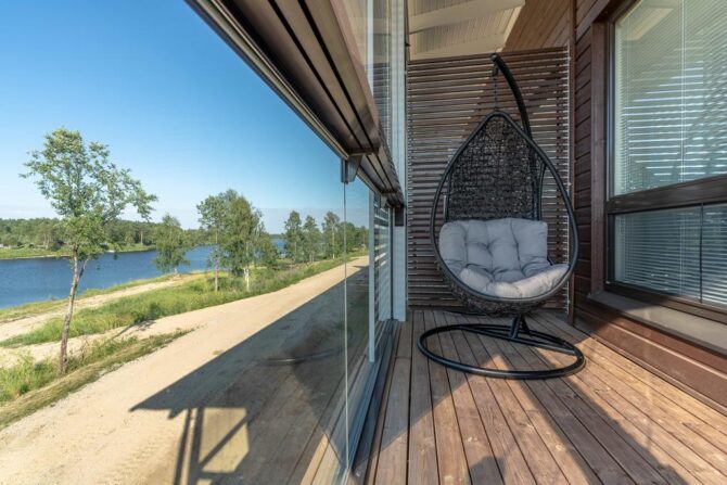 It offers visitors – well-groomed private beach. In addition, you can rent a small car and take a tour of the surrounding area. In winter, guests can enjoy fishing on the frozen lake. As well as a frosty safari on dog sleds, watching the northern lights.