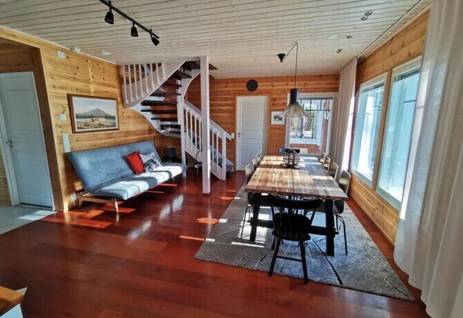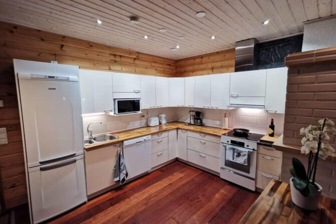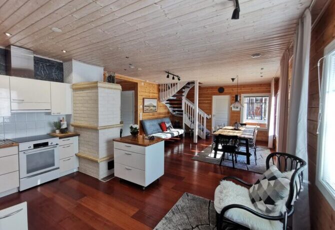 This is the second cottage in a row of our selection. This cottage can also be rented exclusively as a whole. Riverhouse Lumo is located in the tourist center of Ivalo in the Finnish province of Lappi. The Ivalojoka River flows nearby, and Lake Inarijärvi is 20 km away. In this house you can plunge into a quiet holiday in a picturesque place with the possibility of additional entertainment.