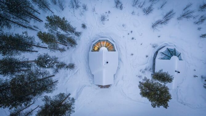 Hotel of small cottages «Aurora Village Ivalo» is located a few hours drive from Murmansk. Domed dwellings with a decent interior and a thoughtful heating system are suitable for living at any time of the year. It features a bar-restaurant, a tour desk and a bar serving strong drinks. Unique cottage houses of the hotel are equipped with glass roofs, through which lying on the bed you can look at the starfall or the northern lights.
