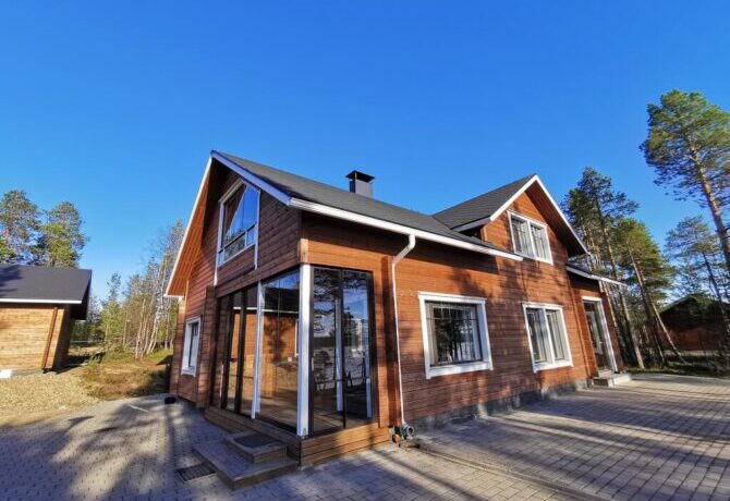 The villa is located in the very north of Finland in the tourist center of Ivalo. It is located on the banks of the Ivaleyoki River and Lake Inari. The accommodation is 315 km from Murmansk.