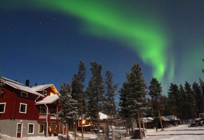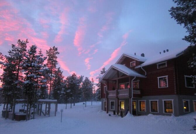 The owners offer their guests trips through the snow-capped hills on dog sleds and snowmobiles. Also here you can rent skis and devices for movement in the snow. Fishing enthusiasts can sit with fishing rods on Lake Inari. Here you can easily catch trout or whitefish for dinner. However, to the lake will have to go by car for about fifteen minutes.