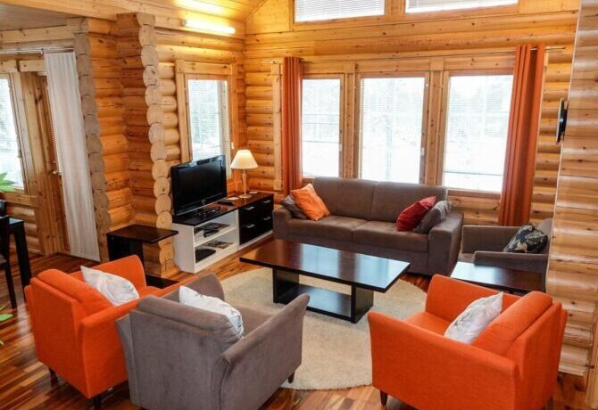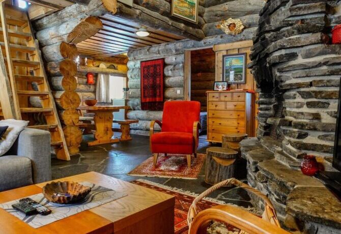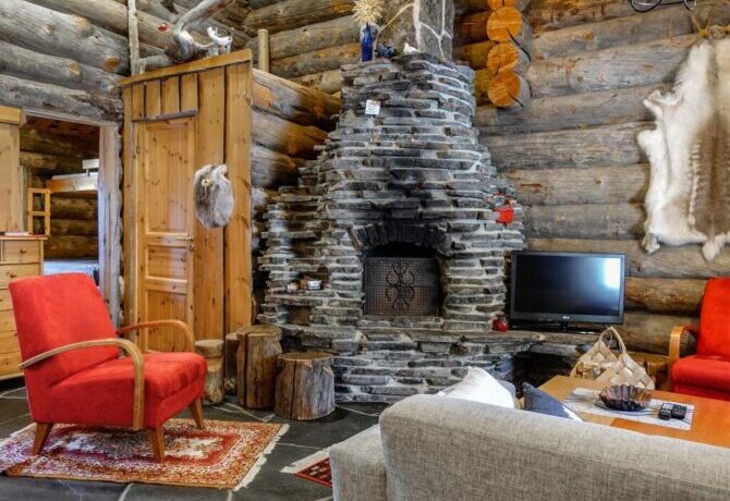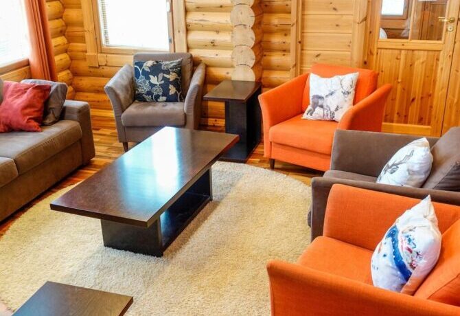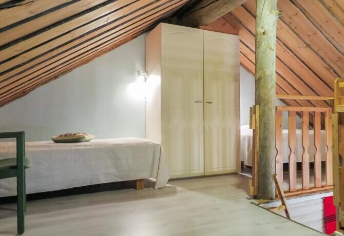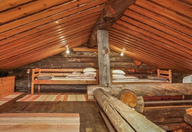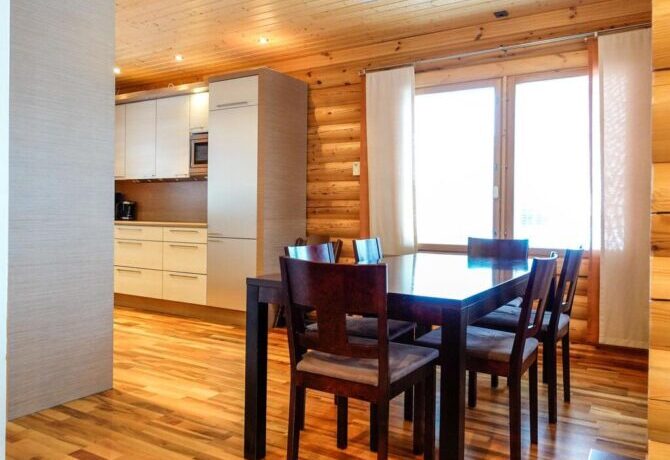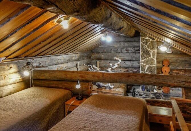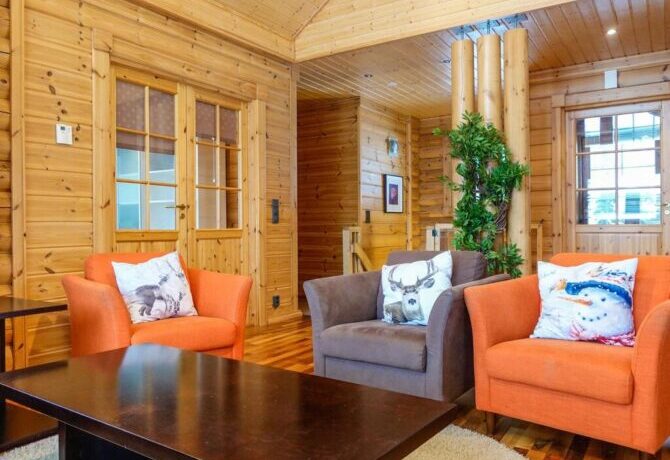 Comfortable two-storey villa with attic welcomes guests throughout the year. The proximity to the ski slopes, slopes and Amethyst mine makes this place in demand among tourists. The interior is designed in traditional Scandinavian colors. There is a lot of wood and natural textiles in the design. The hosts speak Finnish and English. Check-in is carried out after full payment of accommodation. 2 kilometers from the villa there is a restaurant “Aurora”. The centre of Luosto Ski Resort is 1 km away.