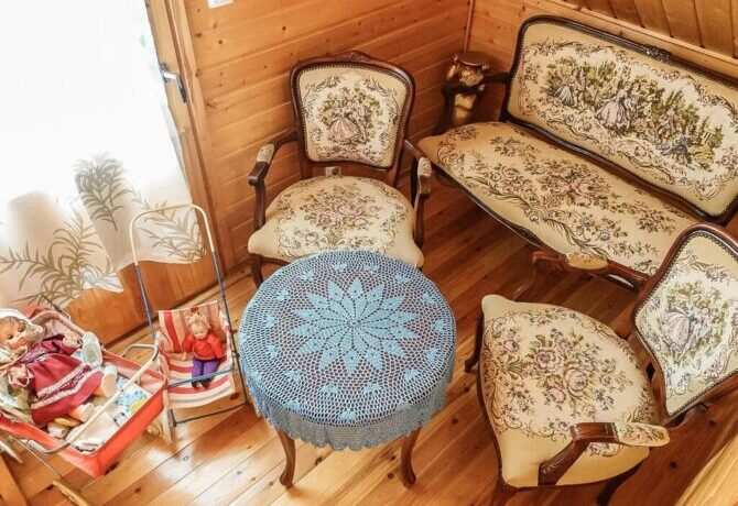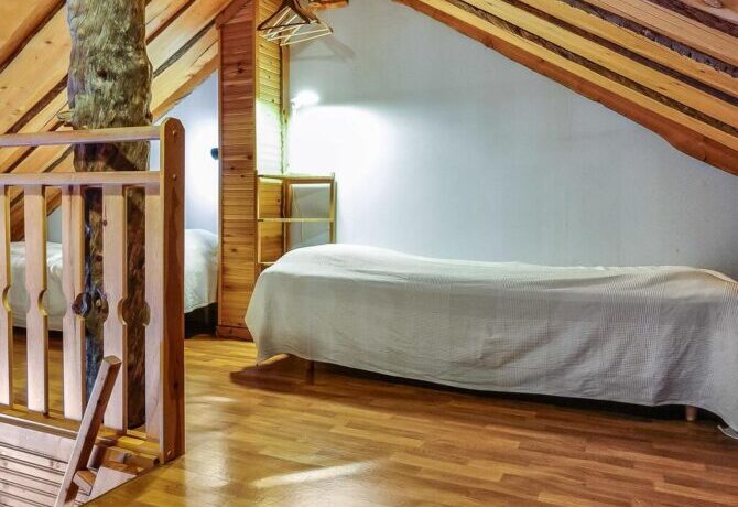 A whole log complex with spacious rooms, a living room and a dining room welcomes guests all year round. The owner provided a parking lot, sauna and fireplace in the relaxation room. The staff speaks English. People come here to go skiing, and in the evening relax in the sauna and spend time with loved ones. The interior has a lot of wood, textiles, homespanie carpets and paths. Rustic surroundings and silence will help to fully relax from the hustle and bustle of the city. The main guests of the hotel are families coming for the weekend.