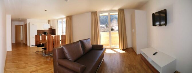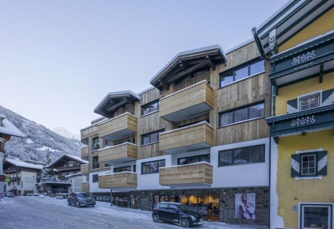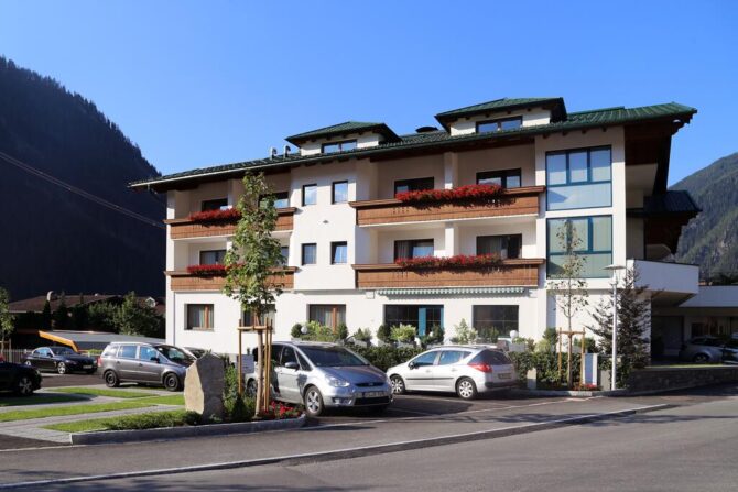 The newly built Apartmenthaus MOUNTAIN LODGE (December 2011) with 11 apartments in a modern architectural style with spacious terraces and balconies is harmoniously located in the center of Mayrhofen. Fully equipped apartment with a private balcony/terrace, 2-3 bedrooms, 1-2 bathrooms, 1 sofa bed and seating area in a spacious living-dining area with kitchenette, dishwasher, extractor hood. Underfloor heating throughout the house provides a comfortable and hygienic climate in the room. It offers a lockable bicycle storage room and ski storage with shoe dryer, sauna and infrared cabin – free of charge. Private parking is available on site. A buffet breakfast is available on request during the winter months at an additional cost. The Ahornbahn Ski Lift is 100 metres away.