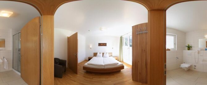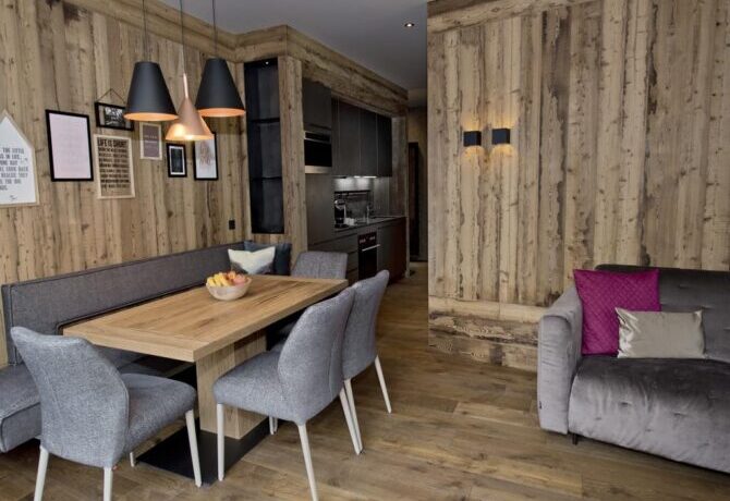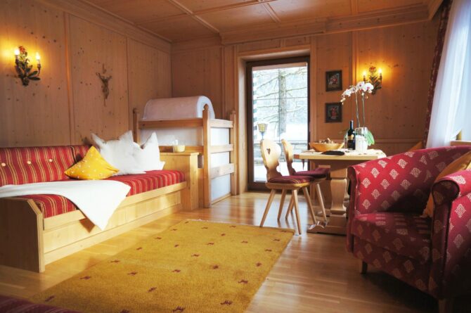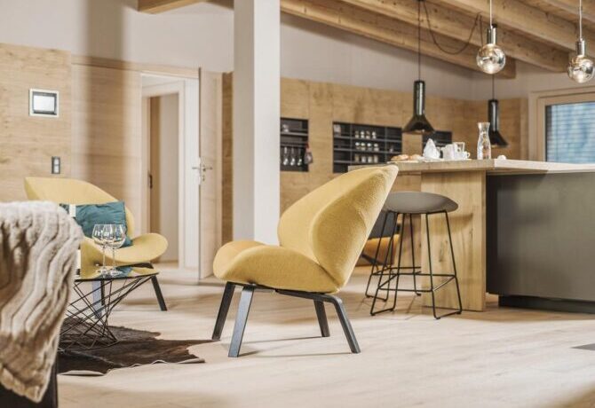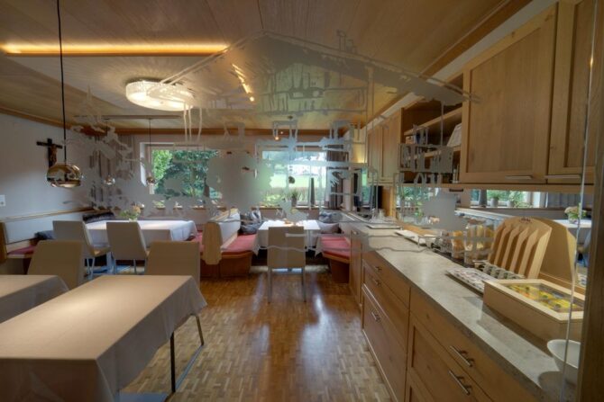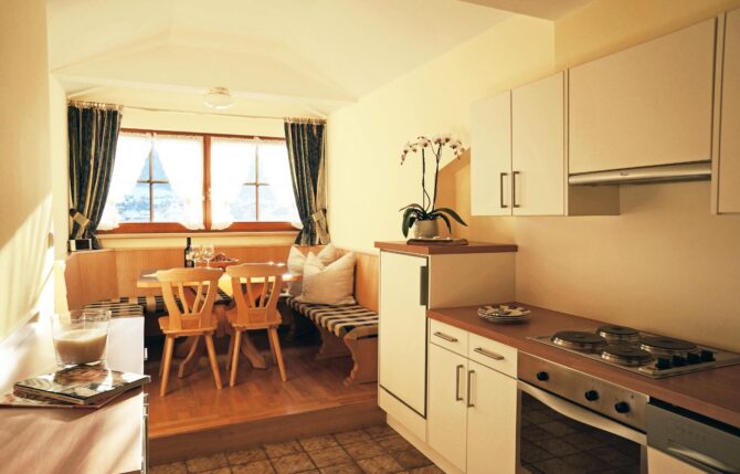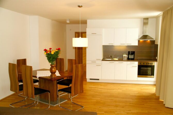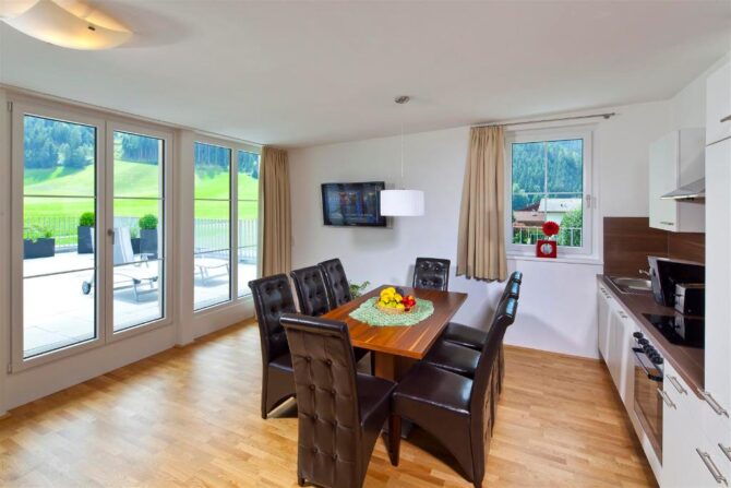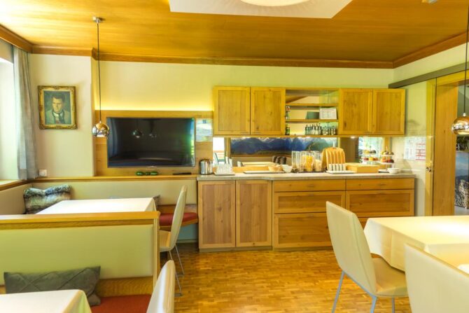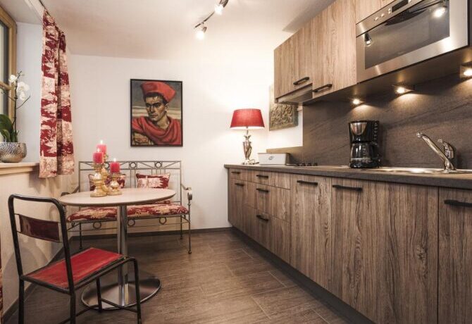 The apartment has been welcoming guests since 2014. The Horbergbahn cable car station is 600 meters from the complex, to the bus stop – 100 m. Spacious studios, rooms with bedrooms are decorated in a rustic style. The interior uses local wood, vintage decorative elements. There is a private terrace near each entrance. The owner Alexander does not offer breakfasts, for guests fully equipped kitchens, provided a full set of dishes. Half a kilometer away is the restaurant Sidan, a little further there is a supermarket. Pets can be brought here, parking is free.