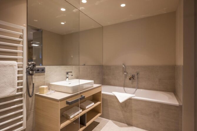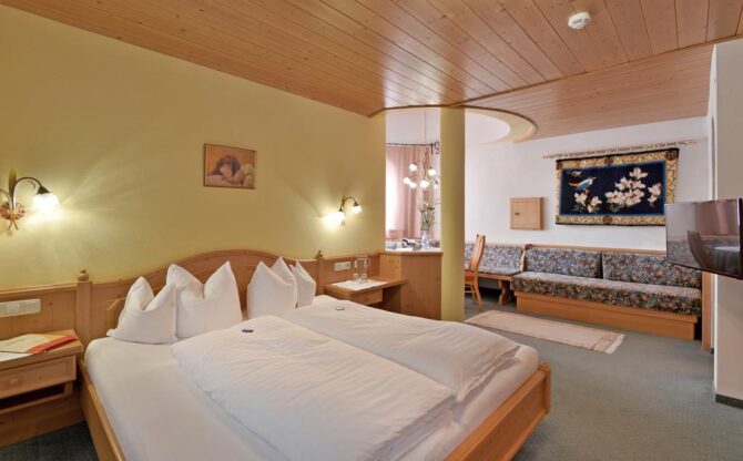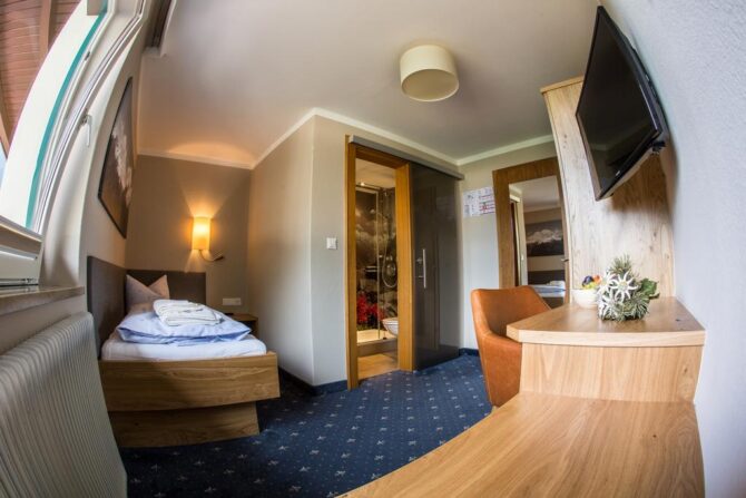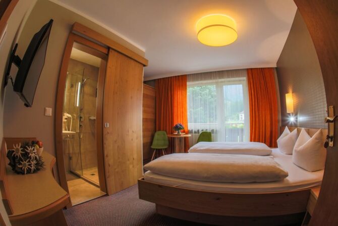 At a distance of 1 km from the ski lift is an authenticaparthotel with well-equipped rooms. The owner’s name is Christoph. Tourists are attracted by the relatively low price for accommodation. To solve problems with food and rest is quite simple. Breakfast is included in the payment for accommodation, restaurants and shops are open nearby, a ski bus stop is right at the entrance, a separate room is provided for storing equipment. In your free time, you can visit the wellness center located on site, in particular the swimming pool, infrared cabin, sauna, common relaxation area. Parking is free.
