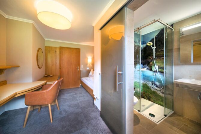 This modern hotel offers Alpine-style rooms a 2-minute walk from a bus stop. The Penken Ski Lift is 400 metres away. The hostess’s name is Maria. It offers single and double roomsfor accommodation. In the morning, a buffet is served. Parking is free, there is a ski equipment room with a shoe dryer. The large entertainment centre Erlebnisbad Mayrhofen is a 5-minute walk away. It offers 2 swimming pools, a skatepark, children’s play areas, a minigolf field.