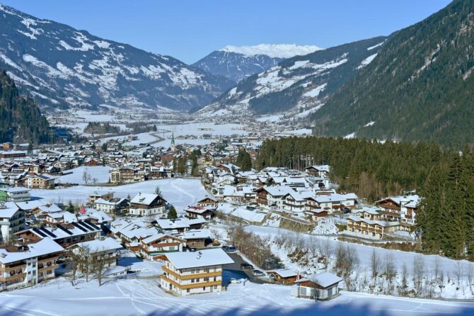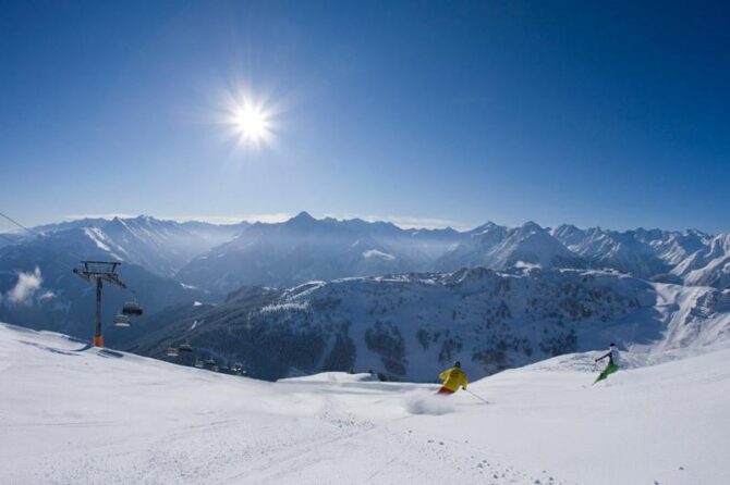 The second most popular Austrian ski resort is located in the municipality of Mayrhofen. The Zillertal Valley is located in Tyrol near the border with Italy. The hotels offer both Austrian and Italian cuisine. Three main zones for descents are defined:
