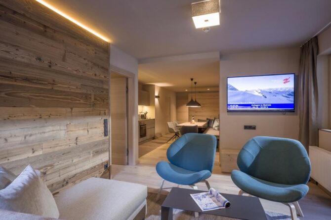 Luxury apartments with exclusive interior design are located 600 metres from the Penkenbahn Cable Car. In the open parking lot there is a car wash for bicycles and a charging station for electric vehicles. For accommodation there are comfortable apartments with bedrooms, living room and dining area with kitchen. There is no washing machine in the room. A separate room is available for laundry and dry cleaning. Services: free Wi-Fi underground parking, trendy shops on the ground floor Italian bistro on the ground floor, ski rental and ski school on the ground floor. For an additional fee: access to the spa with Finnish sauna, bio sauna, infrared cabin and relaxation area, rich breakfast buffet, half board: breakfast buffet at the hotel and dinner in a nearby hotel, taxi from Innsbruck airport or train station.
