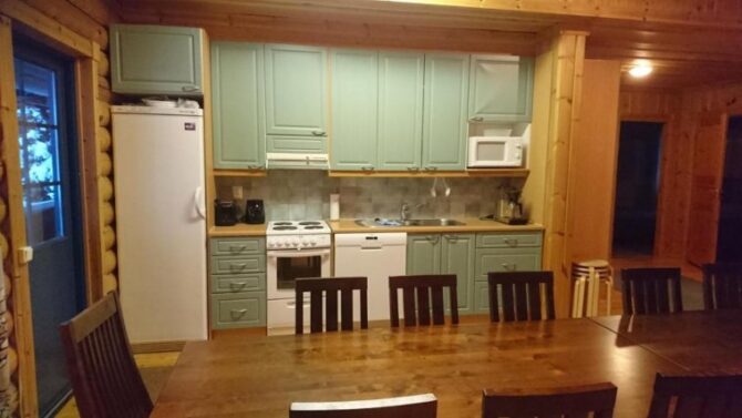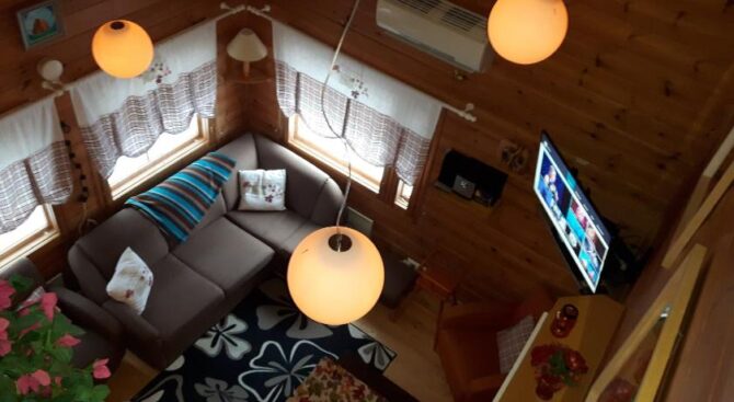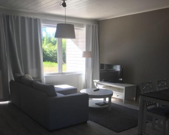 Another comfortable apartment with a private garden and a beach is located in Kotila on the shores of a forest lake. There is a restaurant on site, but guests prefer to cook their own meals. The kitchen is well equipped with appliances and utensils. During the day, guests can enjoy pleasant travel, walks, and their favorite sports. In the evening – a hot sauna and gatherings under the starry sky.